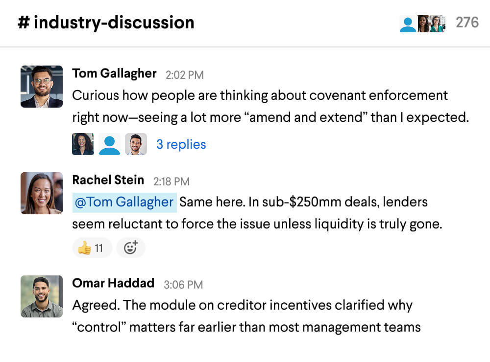 Access the same lessons and methods taught inside the world’s leading restructuring and distressed Investing teams and organizations.