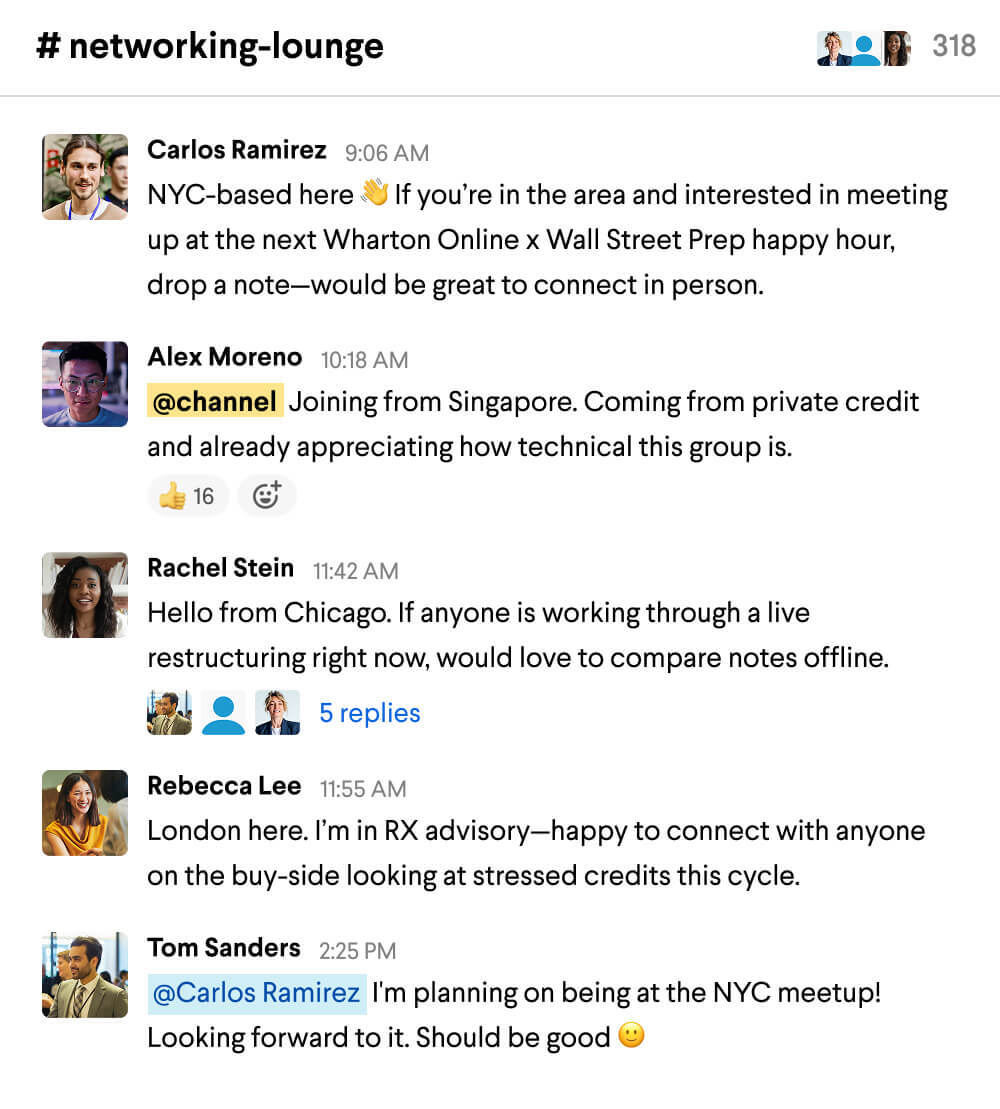 Enrolling in a Wharton Online & Wall Street Prep Certificate Program is a unique opportunity to expand your professional network beyond your specific industry. Enrollees attend cross-program events attended by other Certificate Program learners and graduates in investment banking, private equity, hedge funds, asset management, venture capital, financial planning and analysis (FP&A) and other career tracks.